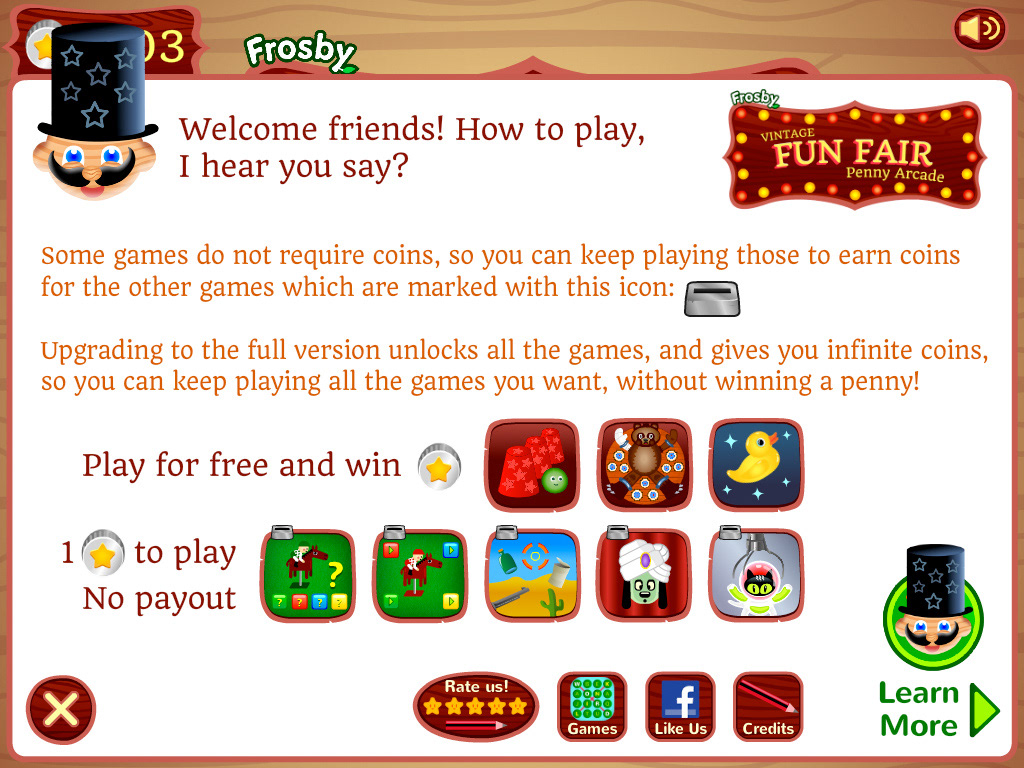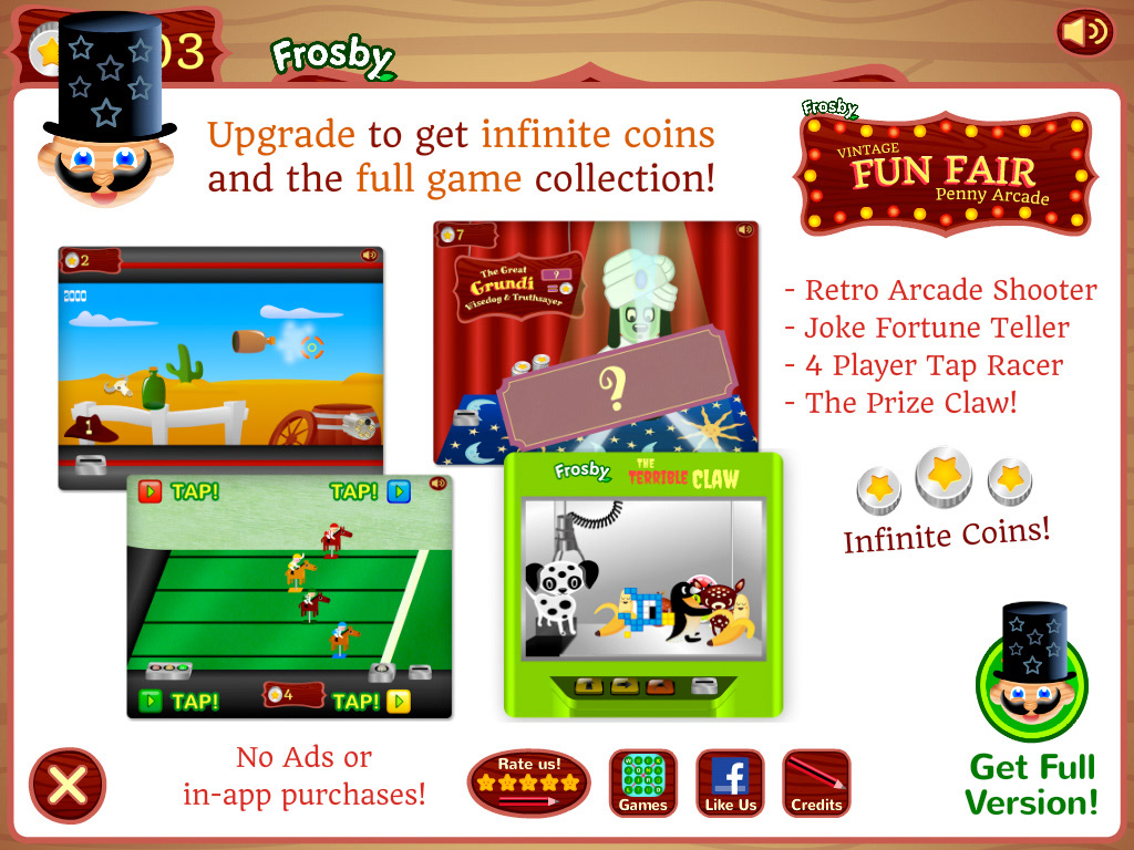 Frosby's Funfair Penny Arcade is a family games app celebrating the timeless fun and vintage style of funfairs and penny arcades. I designed the mini-games to look different in style, creating faded, worn-out backgrounds and nostalgic embellishments from funfairs and classic video games. I am very inspired by the coin operated wooden mechanical toys I saw as a child in London's Covent Garden, so I decided to translate this into digital form.